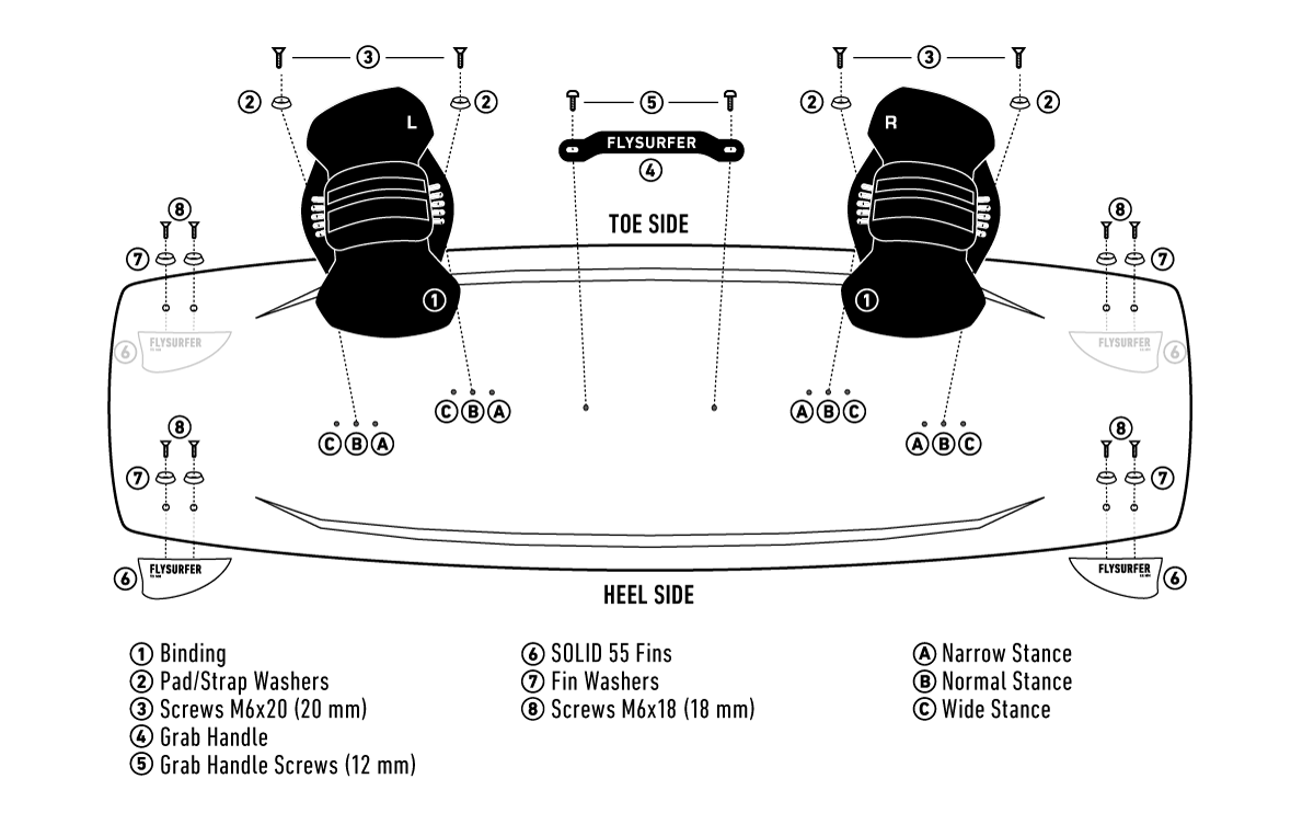 Литые под давлением плавники (фины), изготовлены из карбона, армированного углеродом, который отличается особой легкостью, ударопрочностью и прочностью. Форма и размер плавников SOLID 55 мм отлично держат направление и улучшают характеристики угла на ветер, идеальное сочетание для линейки досок FLOW.